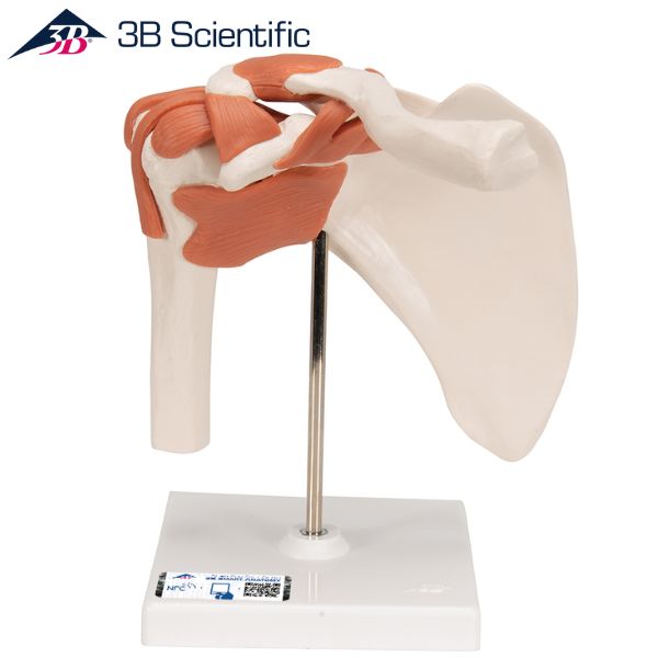 מודל מפרק כתף מקורי מבית 3B Scientific® כולל קוד QR אישי המאפשר גישה חינמית לדגם הדיגיטלי באפליקציית 3B Smart Anatomy.
