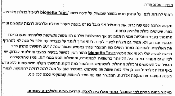 מכשיר Bionette מסוגל לתת מענה גם ברגע שהאלרגיה תוקפת.