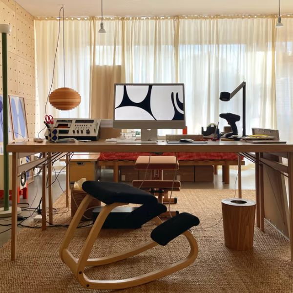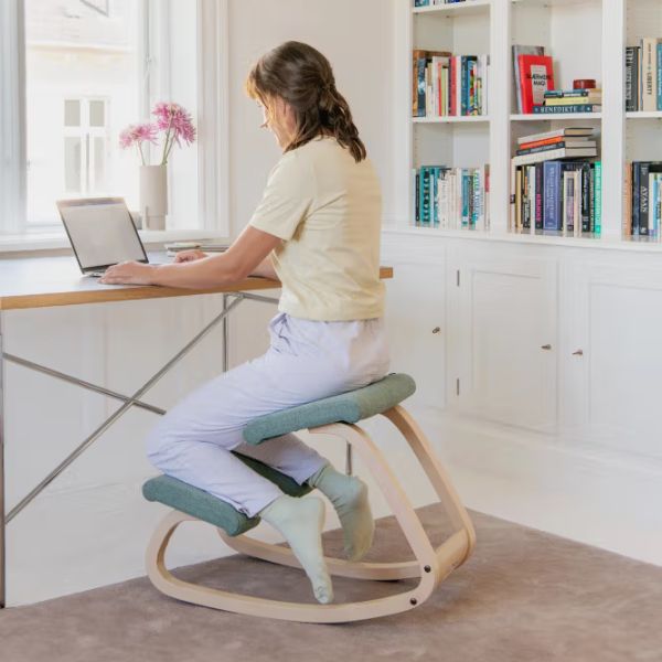 ישיבה בתנועה טבעית השומרת על עמוד שדרה בריא ומעודדת ריכוז ואנרגיה לאורך היום.