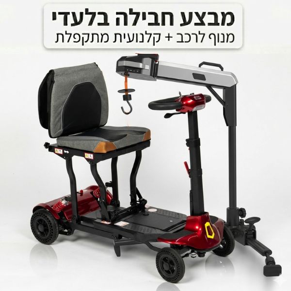 חבילת מבצע - קלנועית קלה במיוחד ומתקפלת, ומנוף ייעודי להעמסתה לתא המטען ברכב ללא מאמץ.