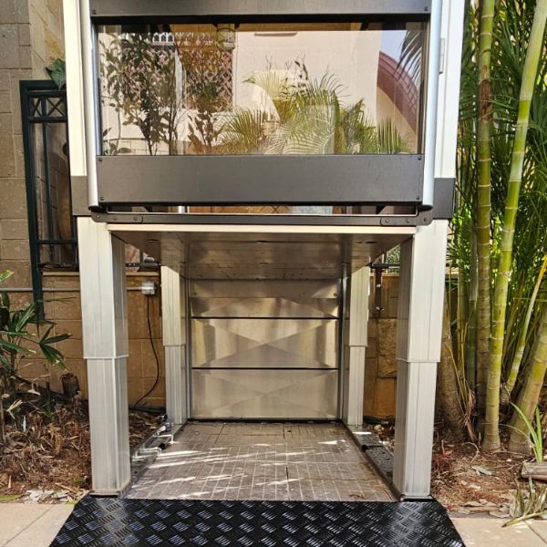 מעלון משטח אנכי עם מצברי גיבוי מאפשר חילוץ במקרה של הפסקת חשמל (מוריד את המשטח לקרקע ופותח דלת חשמלית).