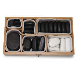 ערכת אבני בזלת לחימום ולשימוש בעיסוי אבנים חמות.