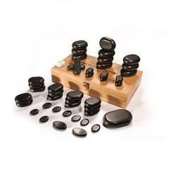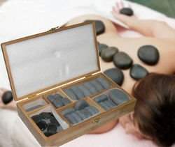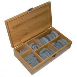 סט אבנים חמות ללא ווקס בקופסת במבוק