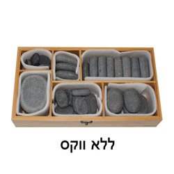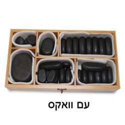 סט אבנים חמות עם ווקס בקופסת במבוק